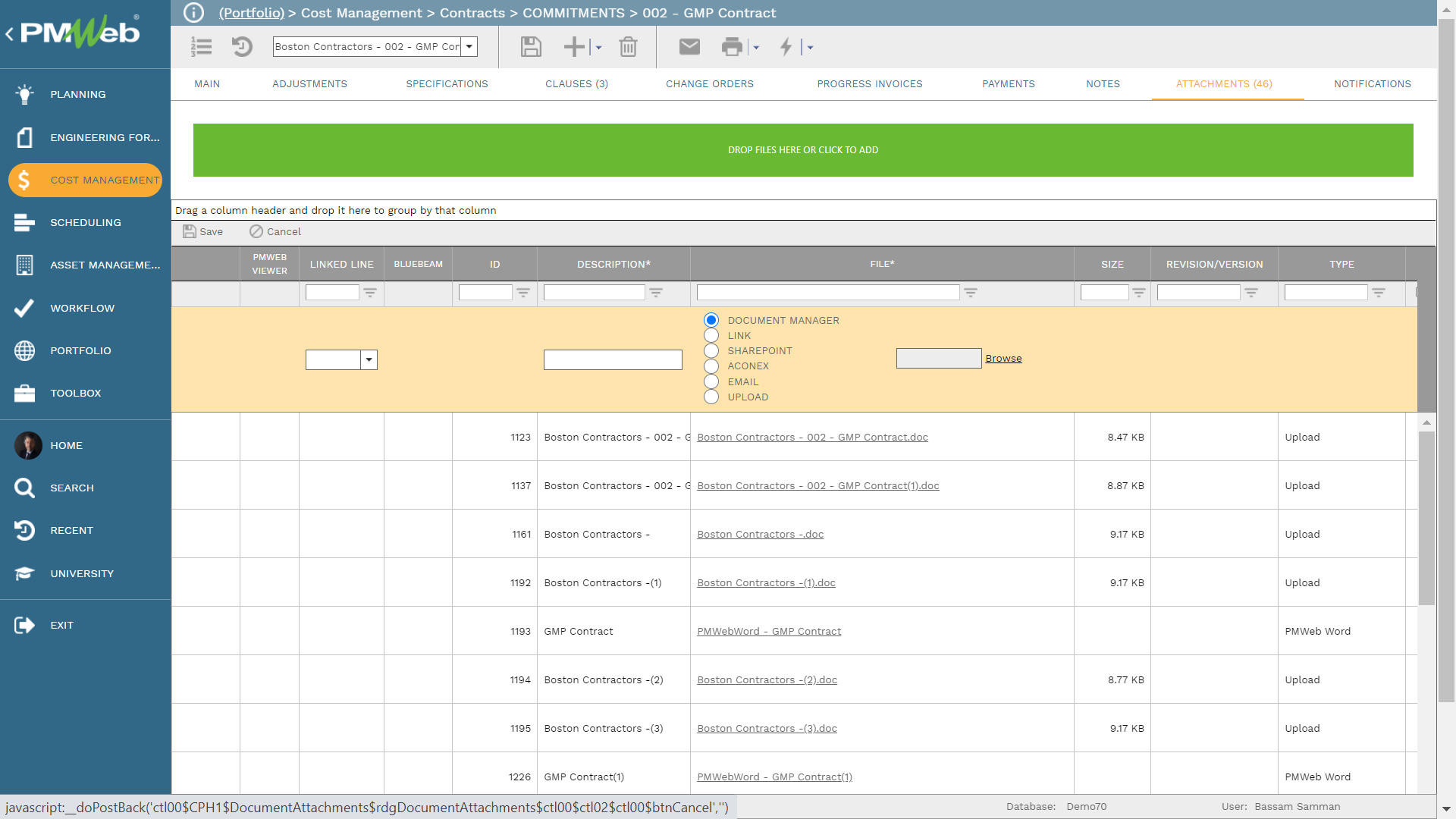 Similar to all other PMWeb project management processes, actual lease agreements, pictures, drawings and other documents that are associated with the lease agreements at each location will be uploaded and attached directly to those records or uploaded and stored in the PMWeb document management repository and then attached to their relevant records. In addition, links to relevant PMWeb records and imported MS Outlook emails can be added to each process transaction.