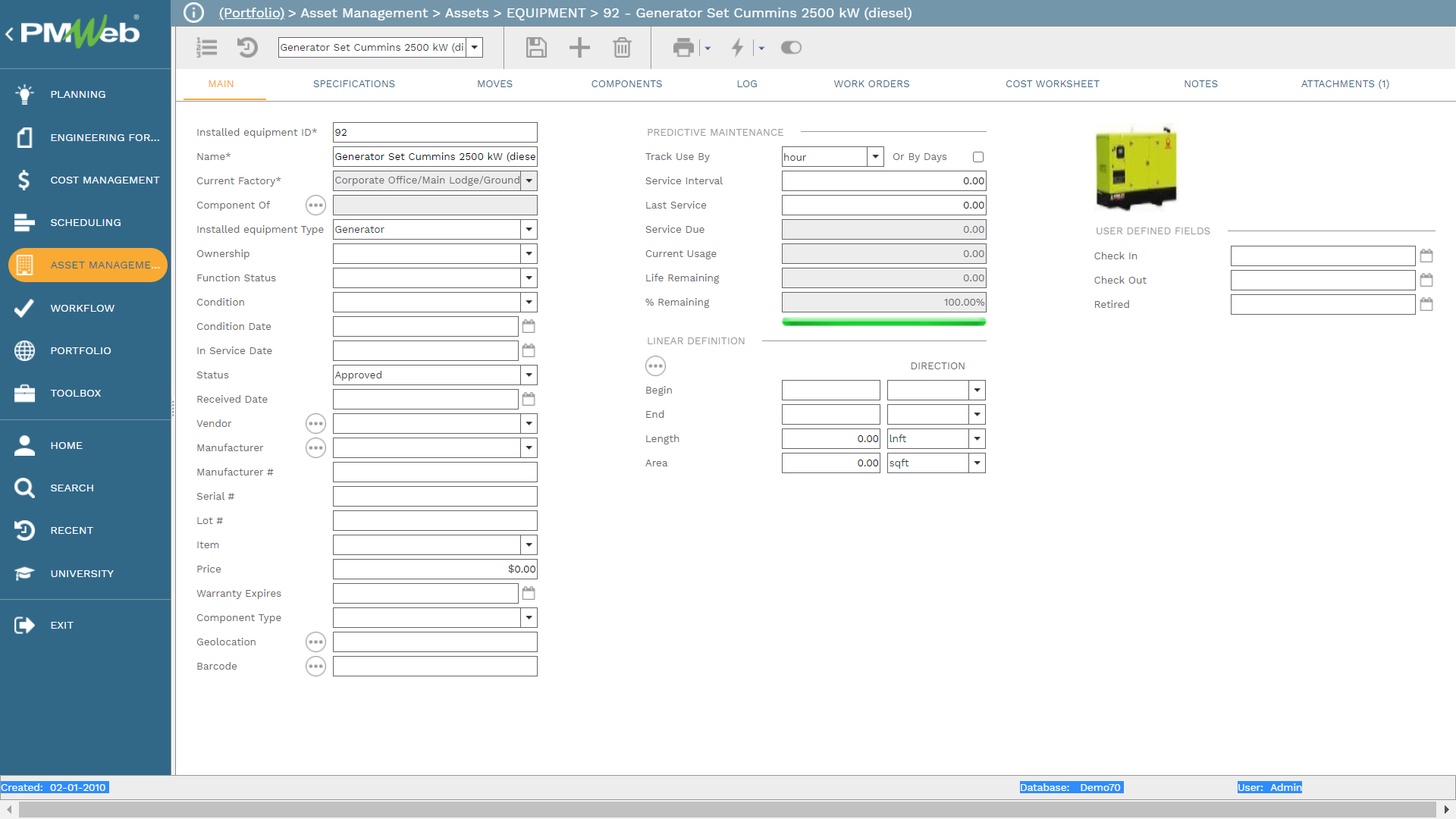 In addition, the specification or user-defined option in PMWeb allows the entity to create all additional fields that could be needed for the assessment of the existing assets. Those user-defined fields can be configured to capture text, currency, numbers, dates, Boolean, and data from a predefined list of values.