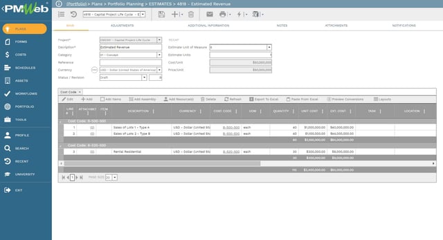 Cost Breakdown Structure (CBS) for Capital Construction Project Revenues