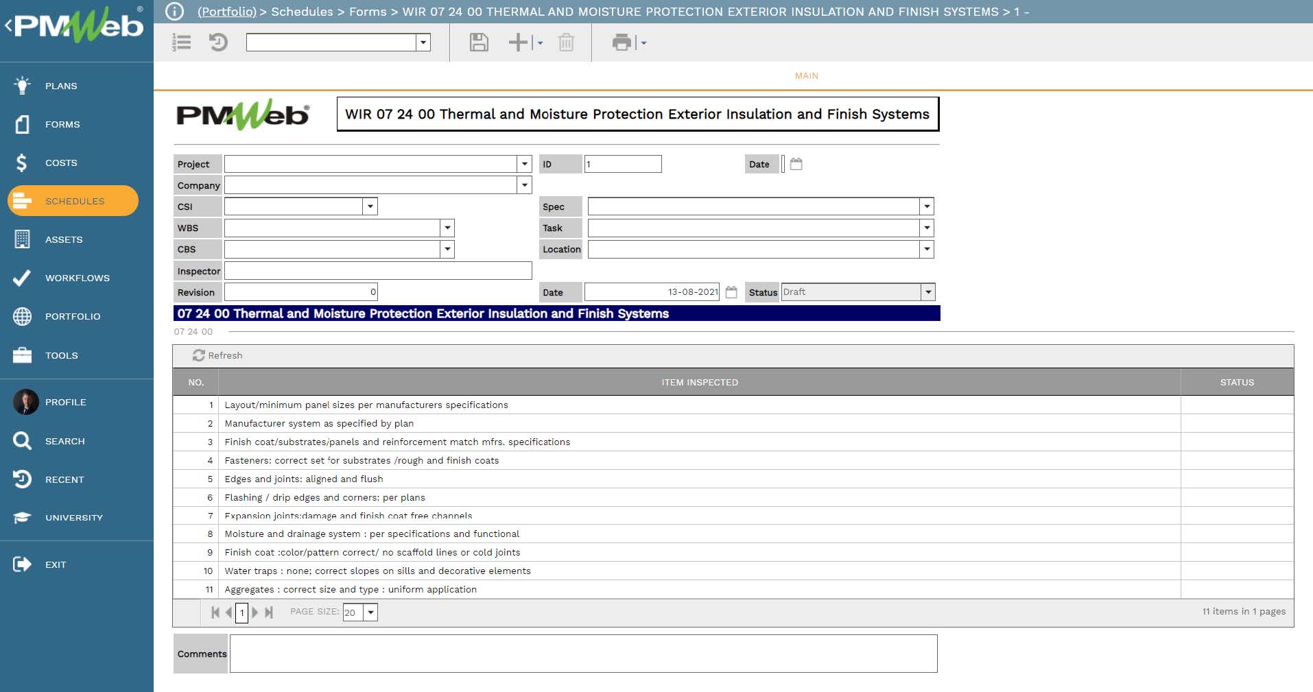A Project Management Information System (PMIS) like PMWeb is designed to enable project owners to digitally enable their project management procedures. PMWeb will be used to manage all business processes and in particular those that have the risk of fraudulent transactions. Those would include as a minimum the business processes for a cost estimate, budget, submitted bids, awarded contracts, changes orders, interim payment certificates, work inspection requests (WIR), material inspection requests (MIR), non-conformance reports (NCR), requests for information (RFI), technical submittals, document transmittals, punch lists, meeting minutes, project team appraisals, value engineering proposals and punch lists. Each template needs to have all data fields required to manage its relevant business process. Some of those data fields could require selecting their values from a predefined list of values to enforce standardization. In addition, the templates should be configured to restrict who can fill the different data fields within each template. Those data fields will be the information to be communicated on the well-thought-of output form.