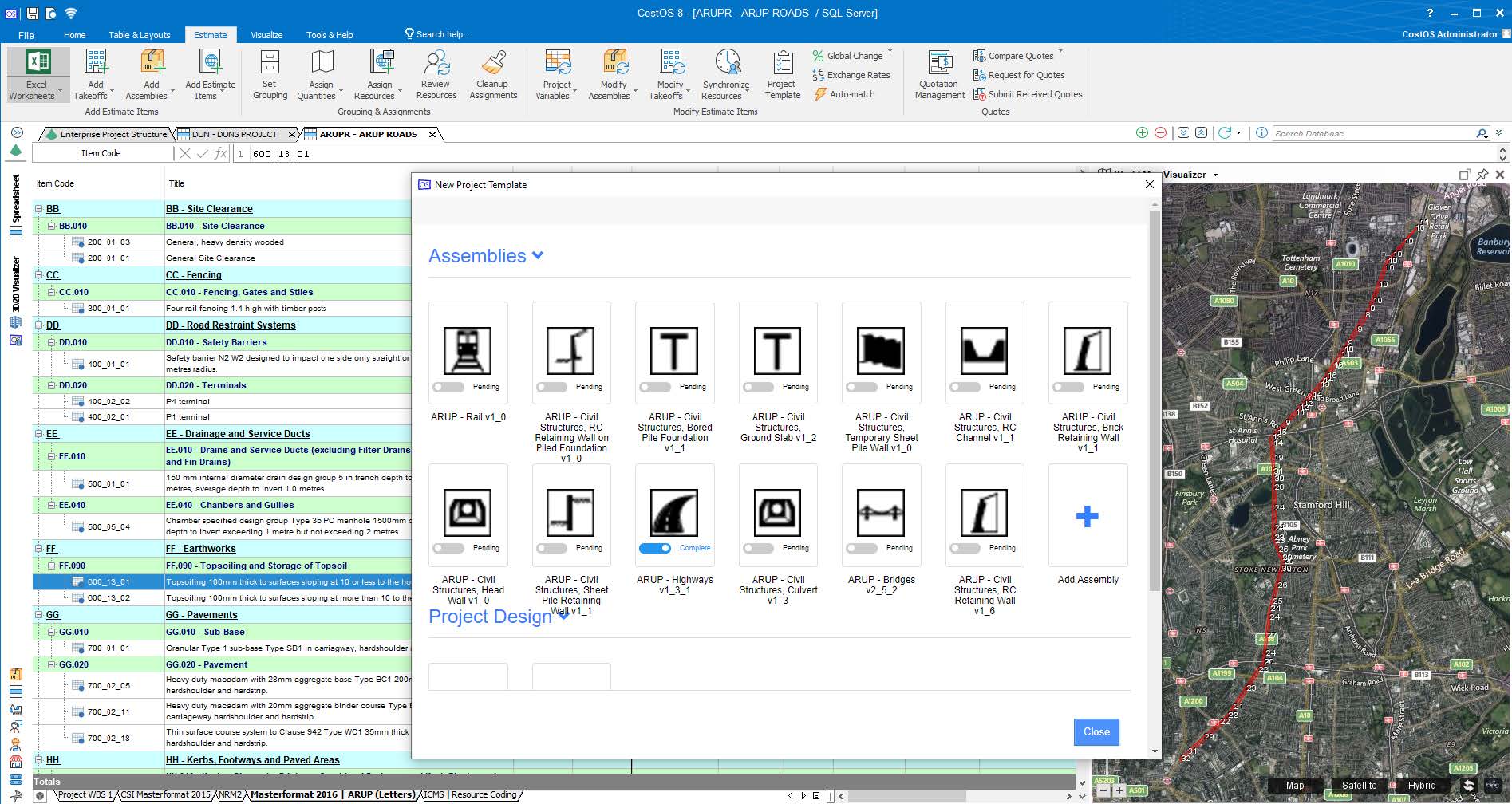 Using the CostOS Cost Estimating software, the project cost estimate integrates with the BIM model as well as the ESRI GIS map to enable automating the quantification of the project’s components and elements. In addition, smart assemblies will be used to further detail the analysis of the labor and equipment resources level of effort and material required to deliver those scope of work elements. The cost estimate then aligns with the detailed WBS.