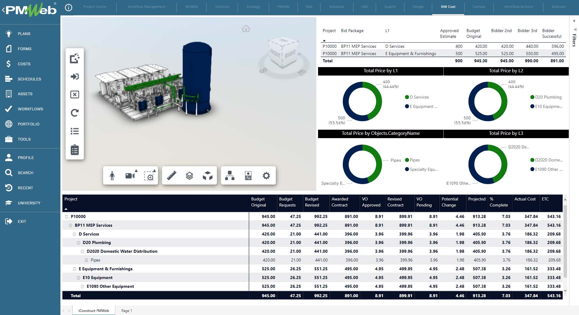 For BIM-enabled projects, the cost and benefit report can be designed in a format that enables project stakeholders to interactively visualize the cost and benefit information for each asset included in the BIM model for the project. This requires that all cost and benefits records managed using PMWeb are tagged with the BIM object ID which was used to create the WBS lowest level of detail.