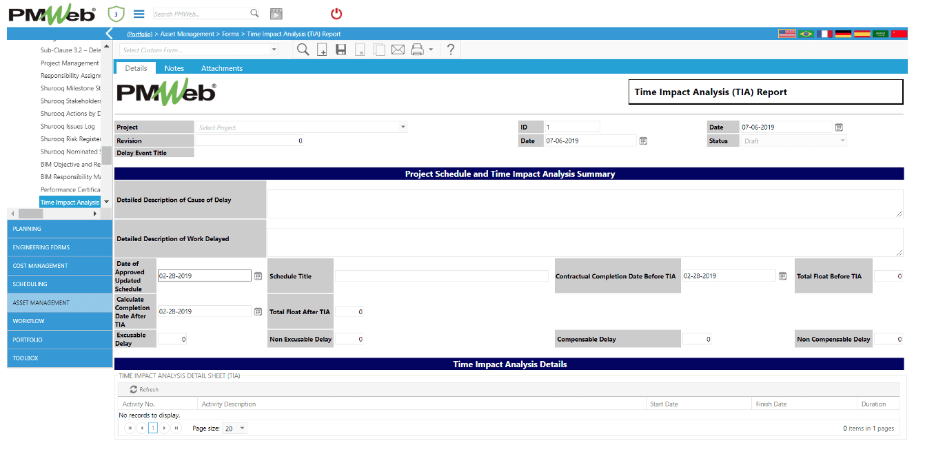 To keep track of all schedule versions, revisions and periodical updates that will be used to analyze delays, regardless of the after-the-fact delay analysis method used, it is highly recommended that all documents and records used in preparing schedules are properly documented and associated with their relevant schedule. Using a Project Management Information System (PMIS) like PMWeb can prove to be of great value even if PMWeb was not used to generate and capture project records and documents during the project’s execution lifecycle.