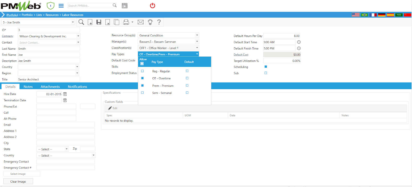 Using Project Management Information Systems (PMIS) like PMWeb, a formal process kind be implemented to capture and approve those resource hours. To start with, the engineering consultant team members who could be asked to work overtime and weekend hours need to be added to PMWeb resources directory. For each resource, the option for the different pay types that each resource could charge needs to be allowed.