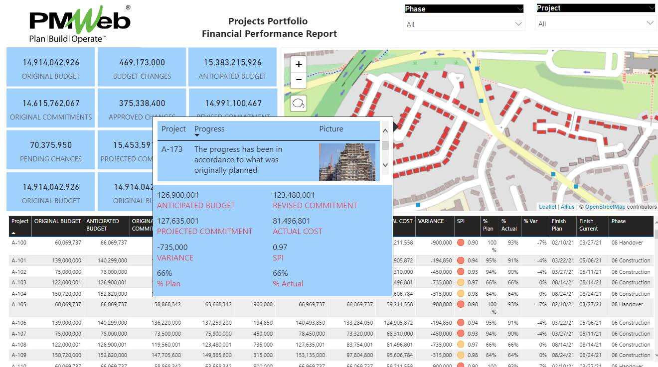The successful engagement of those stakeholders requires enabling them to access those reports anytime, anywhere, using any device. In addition, engaging stakeholders requires gaining their trust by giving them the ability to query the information shared with them by enabling them to drill down for more details on their own and without asking for the project management team’s help.Achieving this desired stakeholder engagement requires using a Project Management Information System (PMIS) like PMWeb to enable having a single data source to capture the data from all business processes required to manage the real estate development projects. The digitizing of those business processes will enforce the required transparency, accountability, and granularity of captured data. In addition, an interactive business intelligence and data visualization tool like MS Power BI should be used to provide the required interactive reports that can be accessed anytime, anywhere using any device. The combination of those two solutions will enable the project team to design the reports that will address the requirements for those stakeholders to visualize, analyze, monitor, evaluate, compare, and benchmark their projects’ portfolio performance.