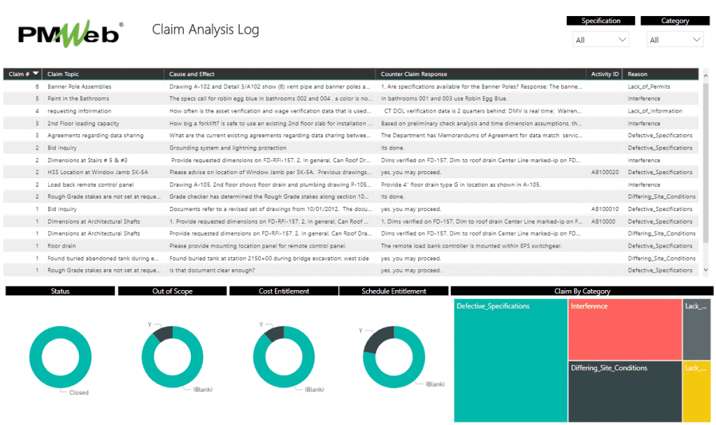 The claim team wanted first to have complete details of all change orders issued by the project owner, how those change orders were valuated, and the impact they had on the project. This information was needed to understand the particulars of each change order and how each change could have affected the contractor’s original scope of work and planned work plan. The PMWeb change order module will be the module that will be used by the claim team to capture the details of all those 300 change orders.