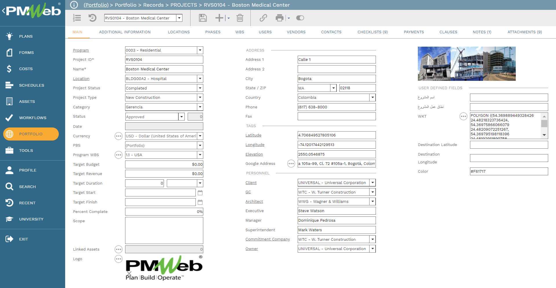 PMWeb allows the organization to capture all their projects regardless of if they were being executed, planned, completed, canceled, or on hold. For each project, PMWeb allows the organization to have all needed details to better describe the project along with the latitude and longitude values needed by GIS solutions for map reporting. In addition, it allows attaching all documents that could be related to the project.