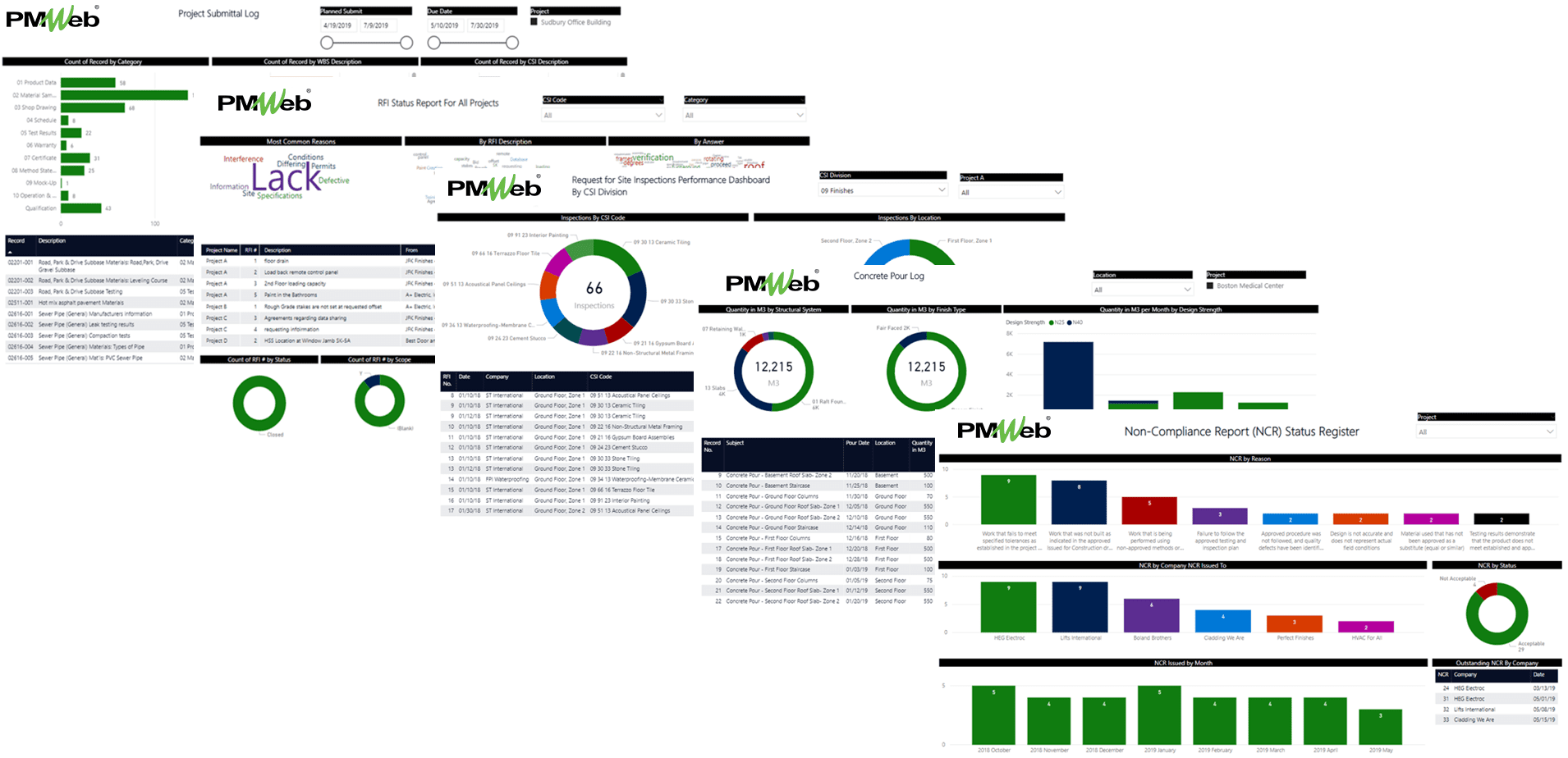 To provide the information needed for the quality dashboard, a number of PMWeb processes need to be used. Two of those will be the ready-to-use processes for submittal items and requests for information while the PMWeb custom form builder will be used to create the work inspection request (WIR), non-compliance report (NCR), and material test reports for which they will vary depending on the material to be tested. For example, those material tests could include poured concrete, ground compaction tests, steel rebar tests, blockwork tests among others.