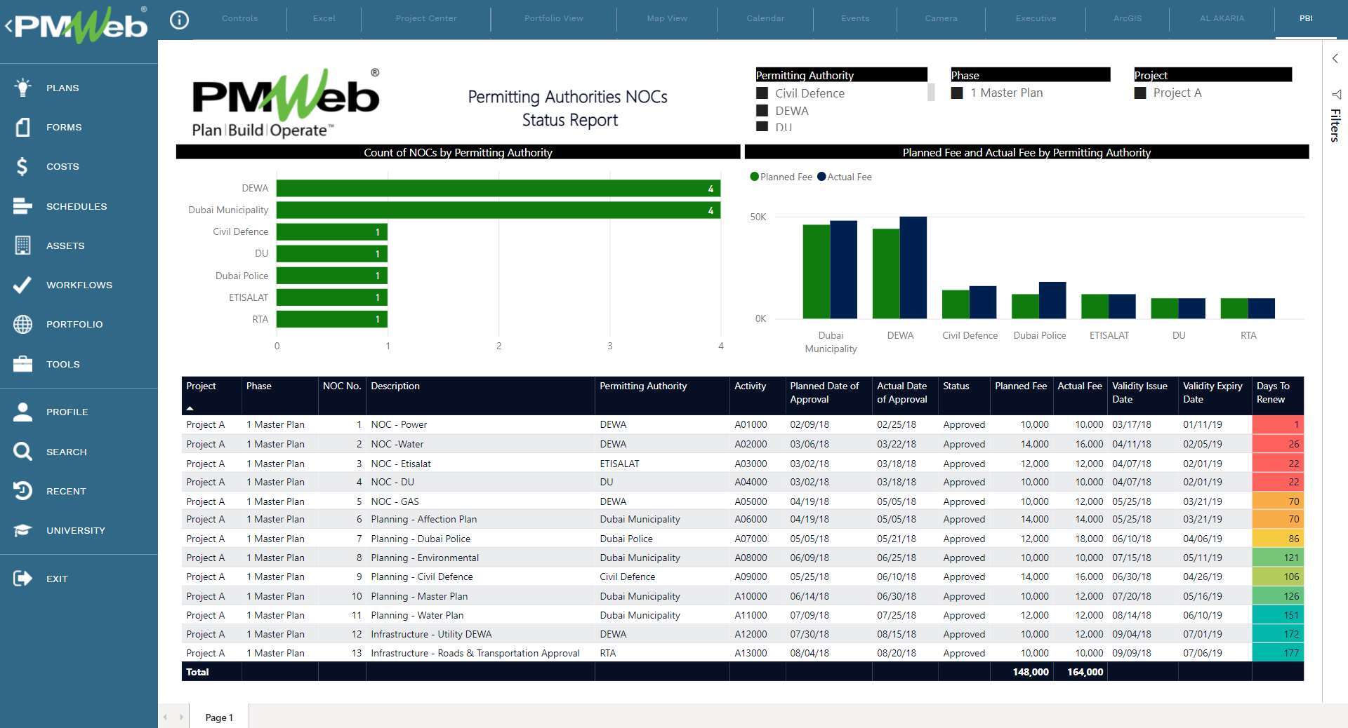 Using a Project Management Information System (PMIS) like PMWeb, organizations can create document templates that are specific for each type of permit issued by public authorities. For example, Dubai Electricity and Water Authority (DEWA) has more than 75 permits and NOCs that are applicable to the different types of engineering and construction projects that need to be executed in the emirate of Dubai. Similarly, the Roads and Transport Authority (RTA), Civil Defense, and other entities have their own permits and NOCs.