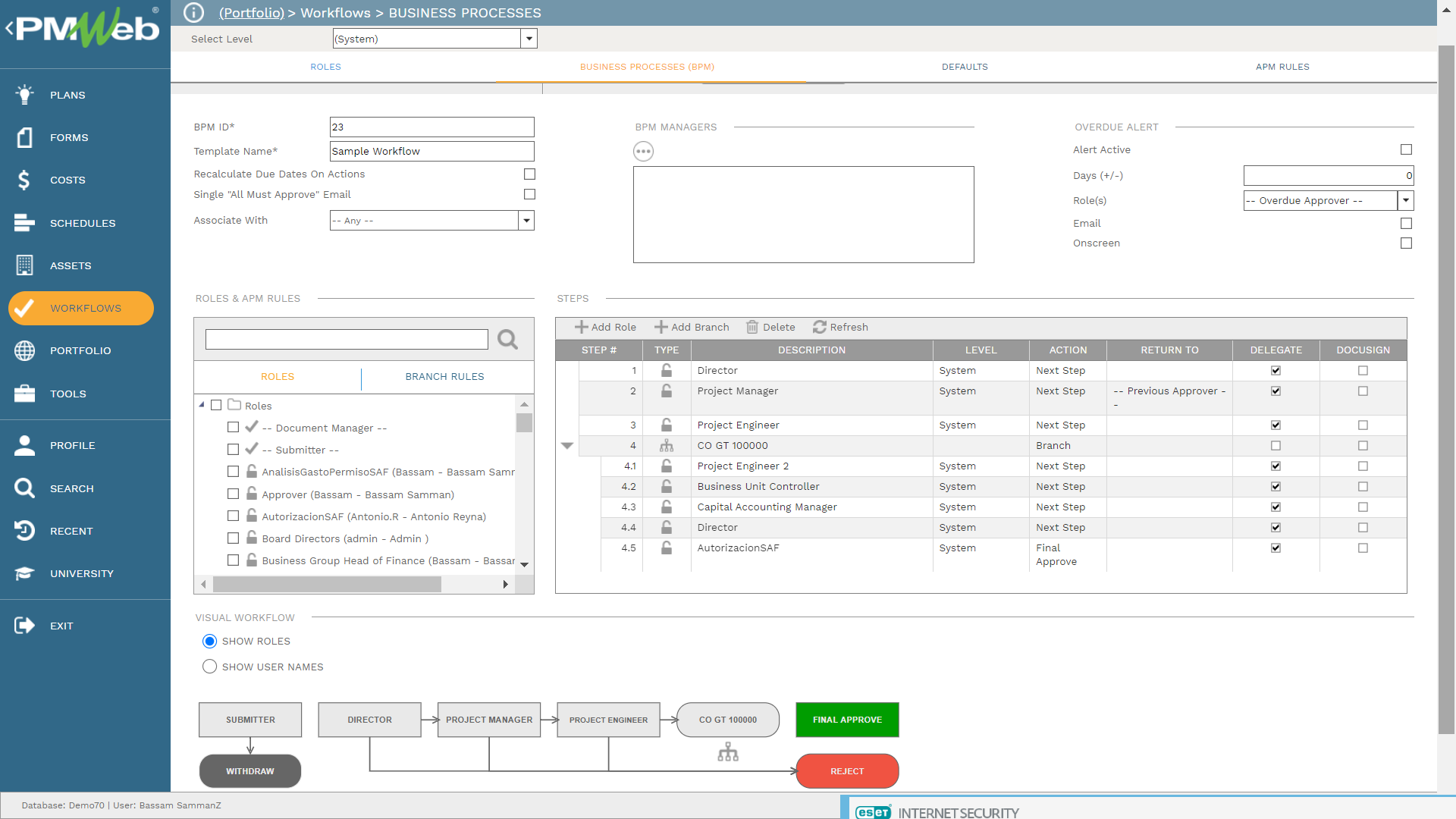 PMWeb allows assigning a workflow for each lease record to formalize the steps for reviewing and approving the lease. The workflow steps include the duration for each step and available actions that can be taken by the reviewer. In addition, to whom it needs to be returned to be resubmitted. The workflow can also include conditions to map the approval authority levels.