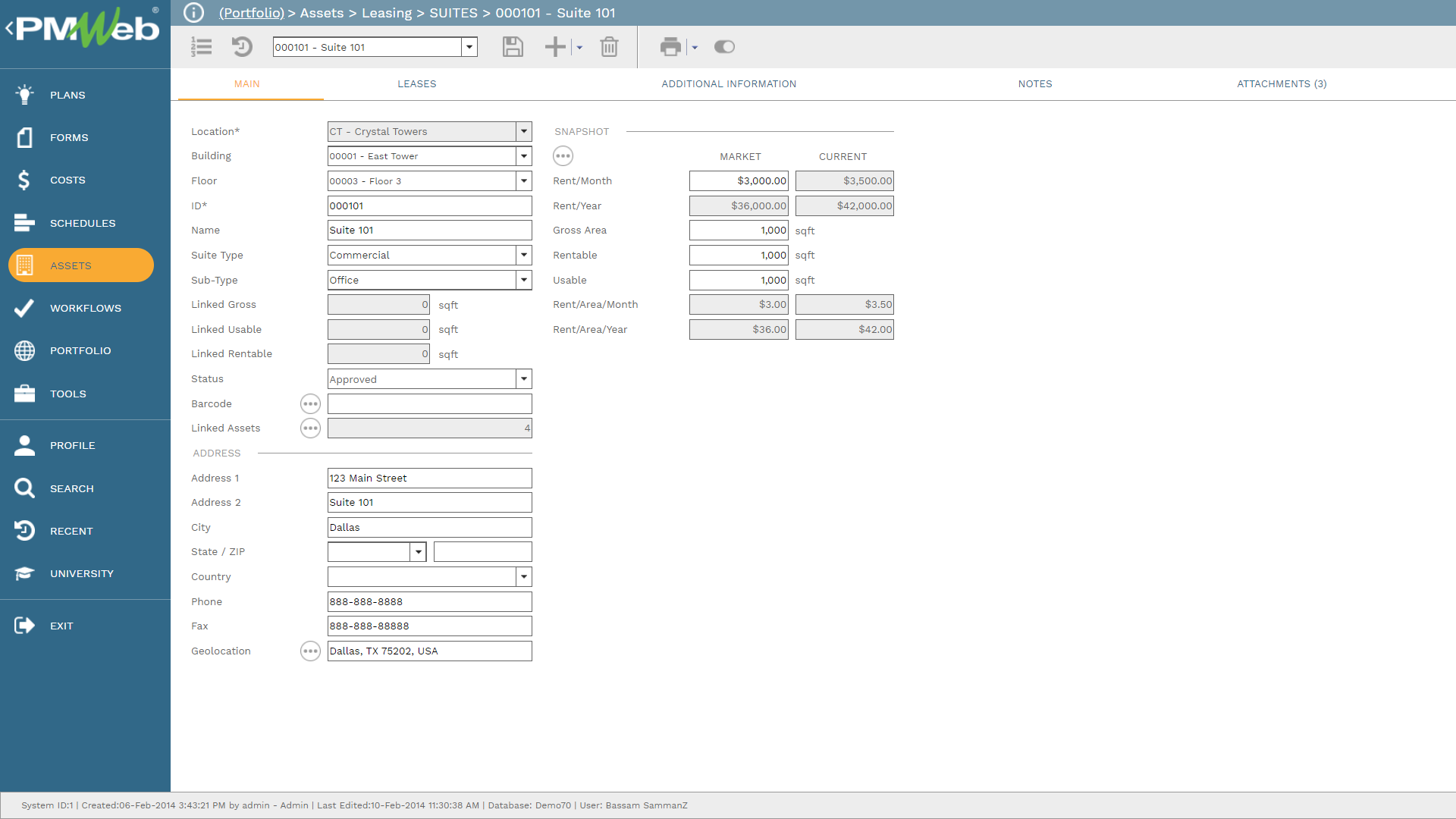 PMWeb Suites module, which is optional, allows the property owner to track all assets in detail as well as combine them in the way that the property owner normally leases them.