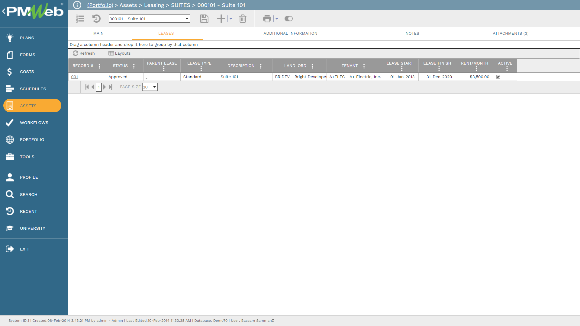 Project Management Information Systems (PMIS) solutions that have asset management like PMWeb can be also used to manage those leases. The PMWeb lease module allows capturing the details of all lease agreements associated with the spaces defined in the PMWeb asset register.