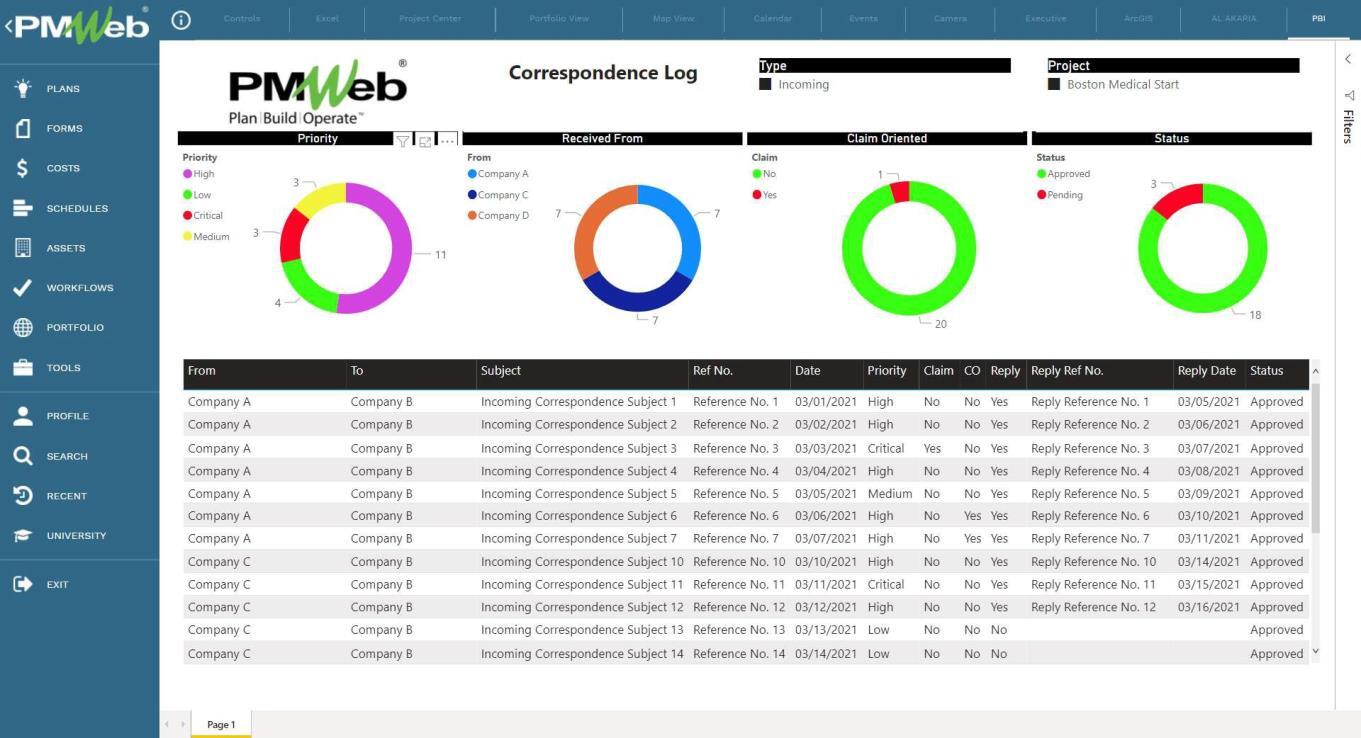 One of the registers that a Project Control System (PCS) is expected to provide is a register of all incoming and outgoing correspondence. The PMWeb Correspondence module will be used to document the practice for the receipt, control, and monitoring of correspondence between the different project entities to maintain accurate and concise records about contractual communications. The module allows capturing all needed details for incoming and outgoing correspondence.