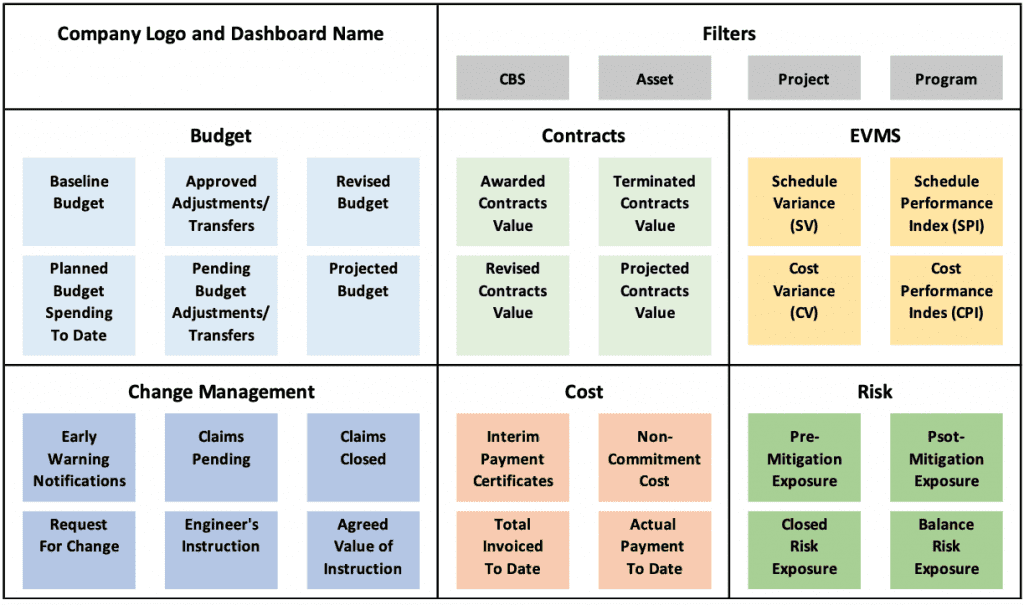 For real estate developers, private equities and other entities who invest in capital construction projects always need to have a real-time single version of the truth dashboard to monitor and evaluate the commercial performance status of those projects. The commercial performance dashboard needs to report on the project or projects’ budget, contracts, changes, costs, and risks’ cost exposure. The information presented in the dashboard should be trustworthy, real-time, traceable, and auditable. The reader of this information needs to be able to select the commercial information that could be specific to a program of projects, specific projects, specific assets of a project, and to a specific cost breakdown structure (CBS) level.