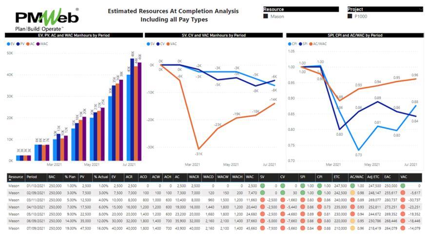 In addition, the business processes for Income Contract, Change Orders, Requisitions and Actual Payments Received are used to manage the revenue information from the contract between the Contractor and Project Owners. Finally, the Daily Report business process formally capture the actual labor resource hours spent on the project. PMWeb Timesheet module can also capture the actual resource hours of the project management team. Those resource-related reports usually combine the planned resources data from Primavera P6 and the actual resources usage captured in PMWeb.