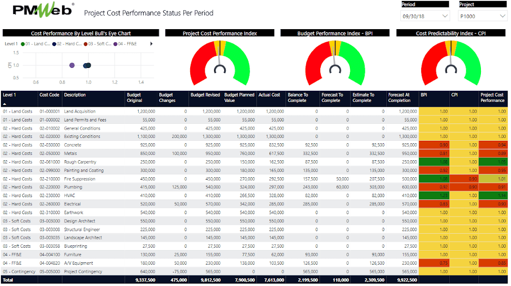 PMWeb forecast module will automatically capture those EVM measures and calculate the EVM performance metrics that include Schedule Variance (SV), Cost Variance (CV), Schedule Performance Index (SPI), Cost Performance Index (CPI), Estimate To Complete (ETC), Estimate At Completion (EAC) and Variance At Completion (VAC).