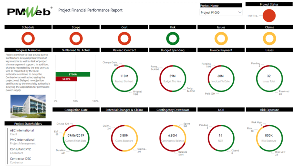 Using a Project Management Information System (PMIS) like PMWeb, all those financial related records, as well as reports and dashboards that the PMC will share with the investor, can be managed on the same platform along with all other business processes needed for the forecasted completion date key performance indicator and raised issues as well as to manage the project’s quality assurance and quality control, health, safety and environment (HSE), risks, contracts procurement, site management, project handover and closeout, sustainable development goals among others.