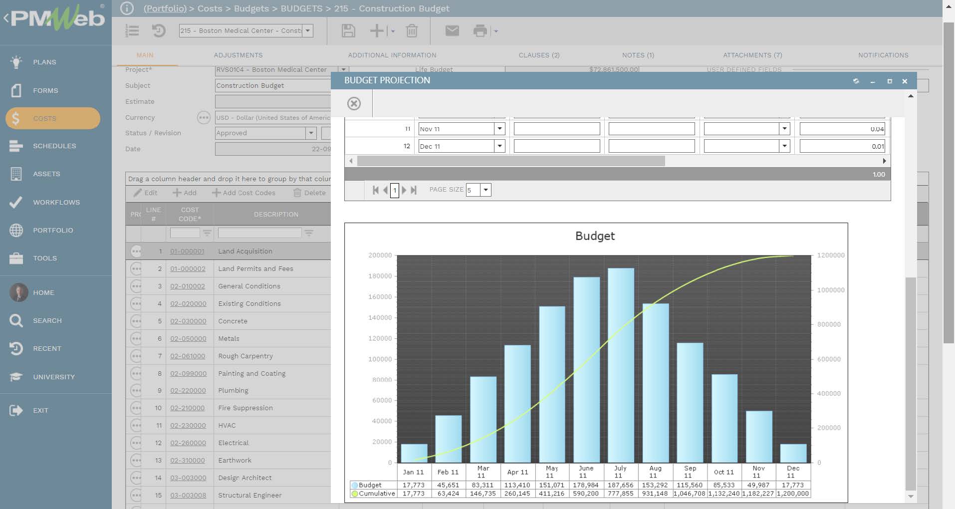 The project budget in PMWeb will be generated from the approved cost estimate for which it will create the budget value for each defined cost breakdown structure (CBS) level. This will ensure that the project is fully aligned with the approved cost estimate. In addition, PMWeb allows defining the projected budget spending plan for each period for each line item. This can be done either by linking each budget line item with the relevant project schedule activity or using PMWeb budget projection to identify the exact spending amount to be assigned to each period. It should be noted that PMWeb allows creating budget versions although only one budget can have the status as “Approved” budget while all other versions need to have their status as “Withdrawn”. Similar to all other PMWeb cost records, the budget could be of multi-currency at each line-item level.