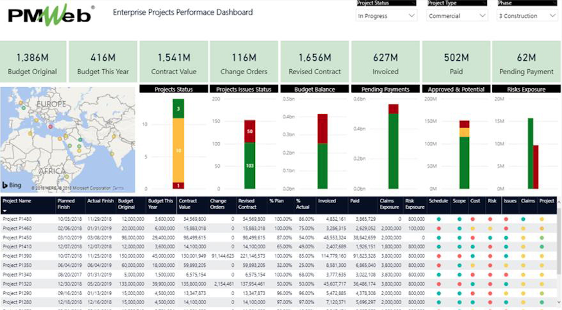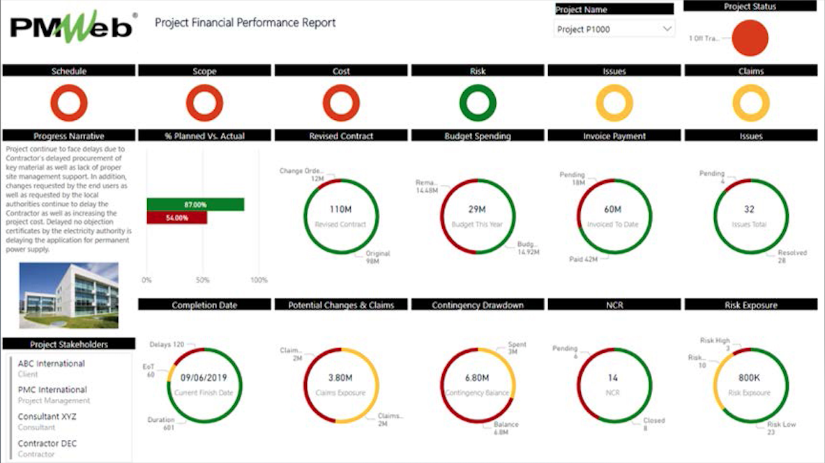 Having a Project Management Information System (PMIS) like PMWeb to manage the hundreds of business processes as detailed in previous articles, those executives can be assured of having real-time trustworthy traceable data that can be reported on. This allows creating dashboards and reports that address the project’s performance from every possible project management aspect. For example, a dashboard can be created for the overall project performance, project financial performance, project buyout, project risks among others.