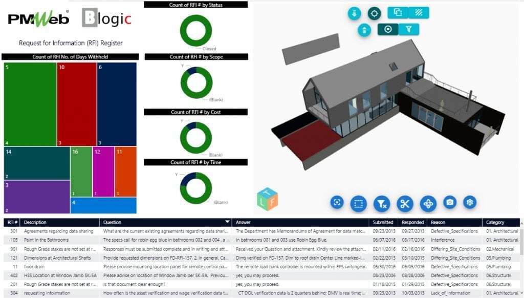 The information captured in those automated processes will become the basis for generating and maintaining real-time reports on the status of every single type of project communication. Those could include logs for request for information, material and shop drawing submittals, change orders, cost worksheets, material procurements, safety incidents, safety violations, claims, permits and NOC, insurance and bond certificates, risk registers, issues, interim progress invoices, extension of time requests, confirmation of verbal instructions among many others. The information associated with each communication type, can be summarized to provide executives with an overall summary of the real-time single version of the truth status of those communications and the impact that they might have on the overall project’s performance.