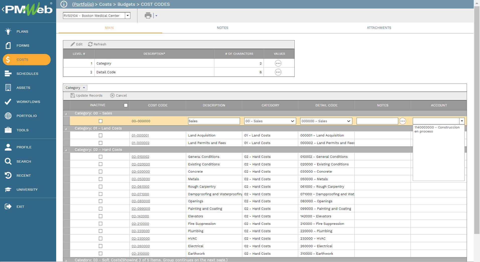 Using a Project Management Information System (PMIS) solution like PMWeb, those challenges can be easily overcome. Nevertheless, first, there is a need to define the CBS and WBS levels that becomes the basis for the required cost performance reporting. PMWeb cost account module is the basis for creating the cost breakdown structure (CBS) which is used on all projects managed by the organization. PMWeb allows creating up to 16 CBS levels for which the code for each level could be 10 digits long. In addition, PMWeb allows mapping the CBS levels to the organization’s financial account codes if those were not aligned with the CBS levels.